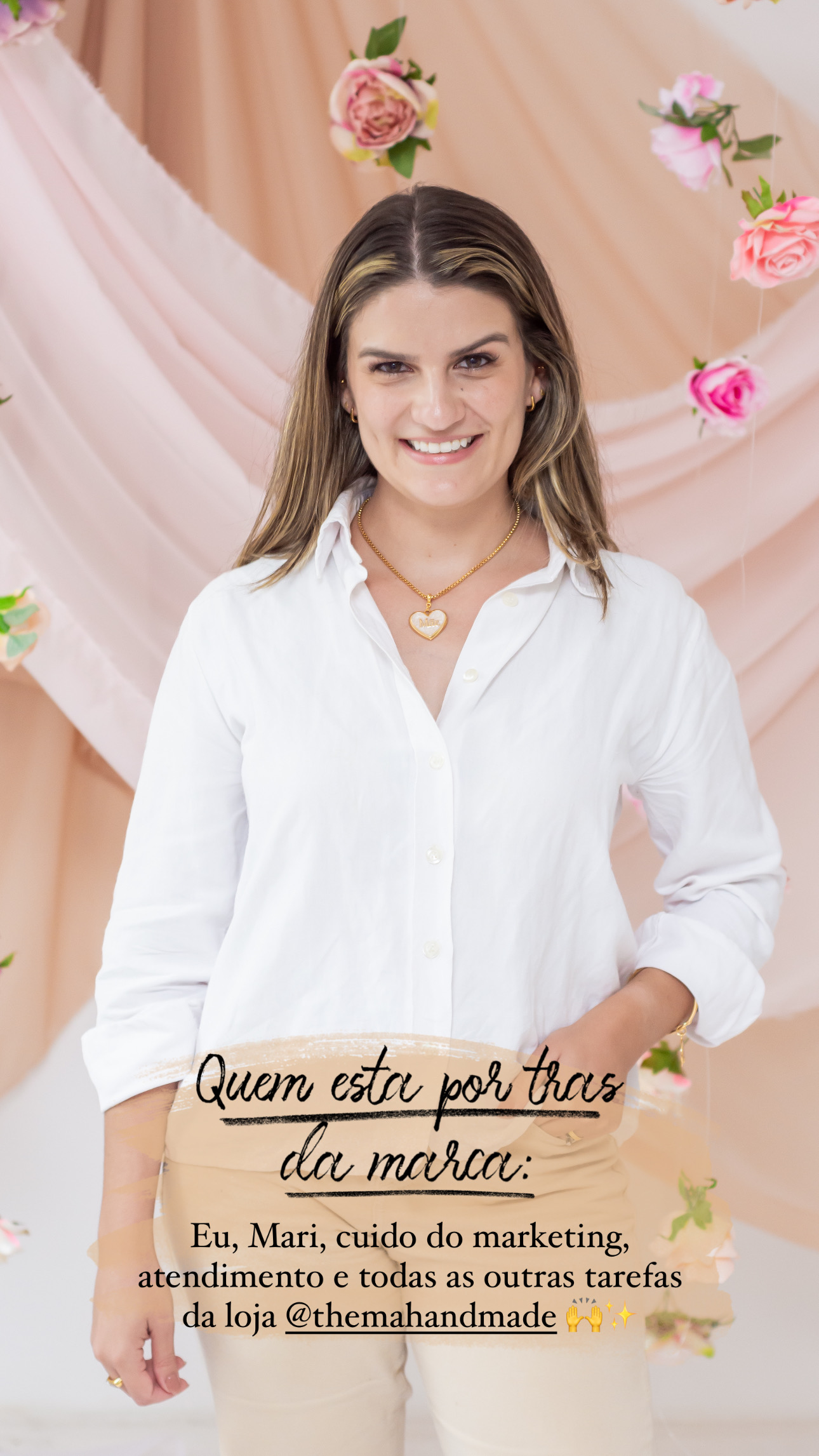 A Mari é quem está por trás da marca (cuida do marketing, atendimento e todas as outras tarefas!).